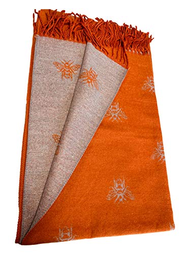 Bumble api - Sciarpa super morbida, colore grigio arancione, con bellissime fettucce e retro in tessuto morbido, calda e morbida