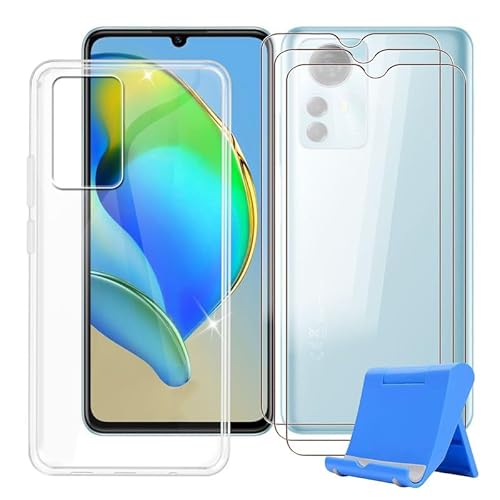 BUNAL Cover per ZTE Blade A72s (6.75") + Vetro Temperato(2 pezzi), Custodia per Telefono Antiurto Antiscivolo, Case Protettiva in Morbido Silicone con Supporto per Cellulare - Transparent