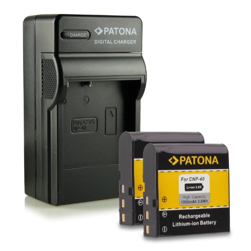 Bundle - 4in1 Caricabatteria + 2x Batteria NP-40 per Casio Exilim High Speed EX-FC100 - Exilim Pro EX-P505 / EX-P600 / EX-P700 - Exilim Zoom EX-Z30 / EX-Z40 / EX-Z50 / EX-Z55 / EX-Z57 / EX-Z100 / EX-Z200 / EX-Z300 / EX-Z400 / EX-Z450 / EX-Z500 / EX-Z600 / EX-Z700 / EX-Z750 / EX-Z850 / EX-Z1000 / EX-Z1050 / EX-Z1080 / EX-Z1200