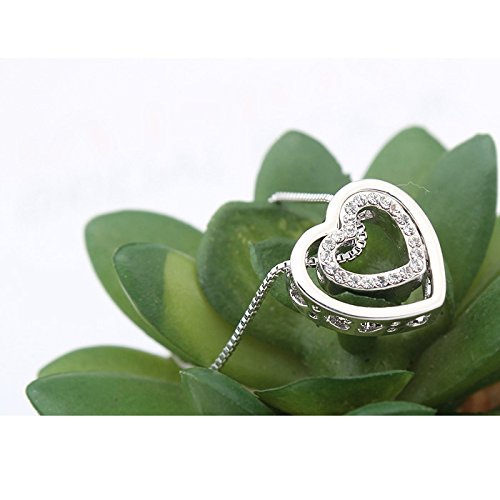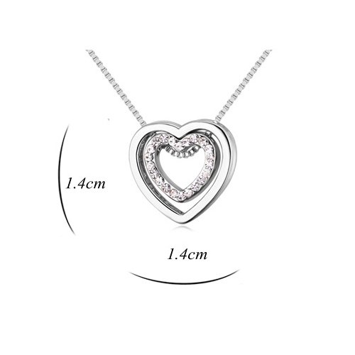 Collana da donna argentata con ciondolo a forma di cuore. il ciondolo è composto da due cuori vicini ed è decorata con tanti strass lucenti. Un accessorio irrinunciabile per gli innamorati!