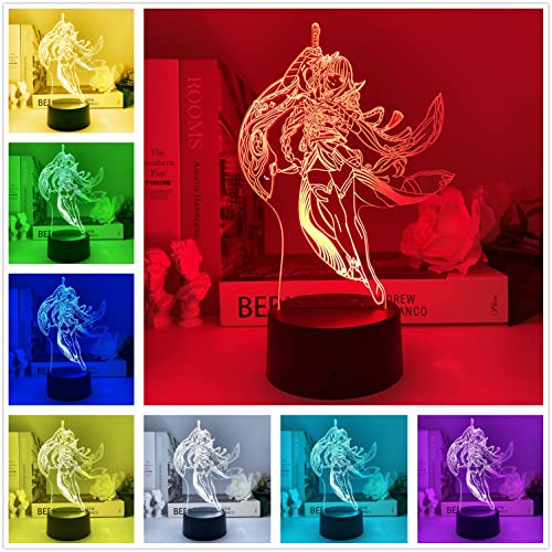 BUOE Lampada LED Genshin Impact Raiden Shogun per cameretta dei bambini, decorazione di compleanno, luce notturna, telecomando