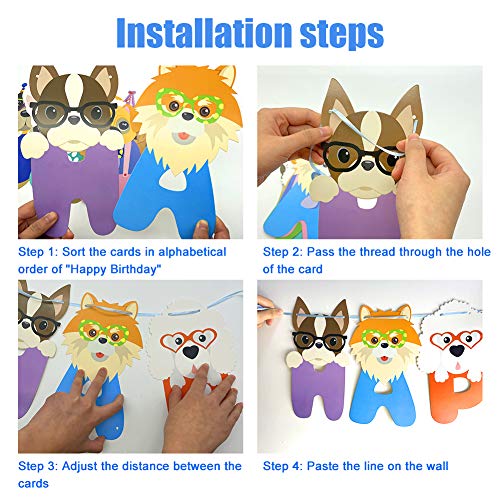 ♞Facile da usare: le decorazioni di compleanno a tema cane sono dotate di un filo. Basta sistemare l'installazione in ordine alfabetico di ""Happy Birthday"", e spostare la distanza tra le carte, infine incollare il filo al muro, semplice e veloce.