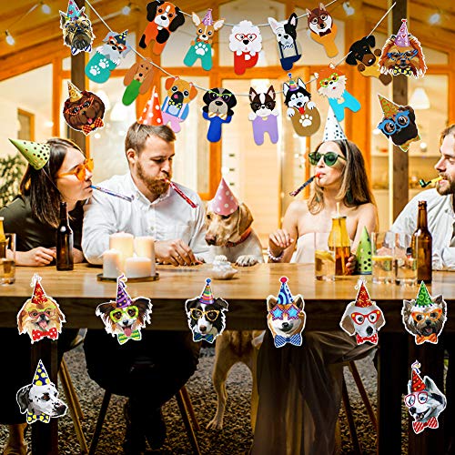 ♞ Banner di compleanno per cani con occhiali: ci sono 13 cani con occhiali, la dimensione è di circa 23 * 16 cm, ogni cane dei cartoni animati viene fornito con cappello, occhiali e papillon. Contiene 13 tipi di cani, le decorazioni di compleanno per cani sono perfette per feste di compleanno per cani.