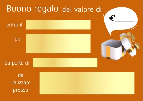 il retro da compilare prima della consegna al beneficiario con omaggio o sconto. Fronte e retro a colori. Riceverai 50 buoni regalo che i tuoi clienti apprezzeranno sicuramente.