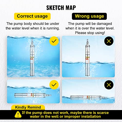 Prestazioni Eccellenti: la pompa per pozzi d'acqua sommergibile è progettata con una valvola di ritegno incorporata, che può essere montata verticalmente ed è adatta per l'uso domestico. Il motore ermeticamente sigillato è protetto termicamente per evitare il surriscaldamento.