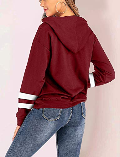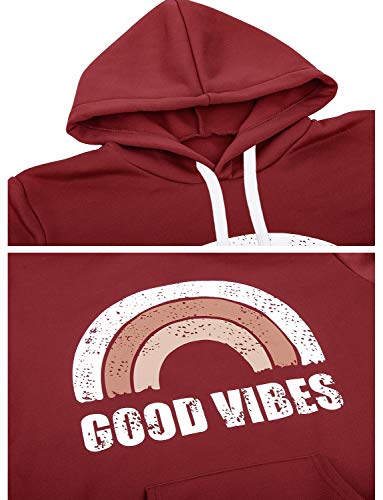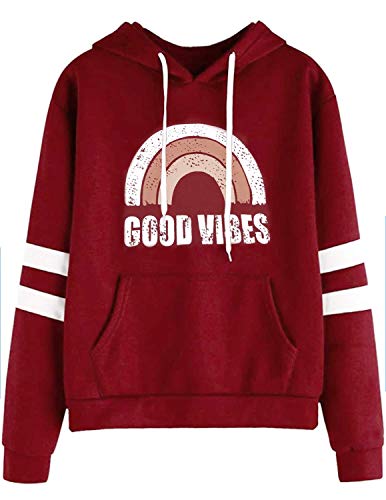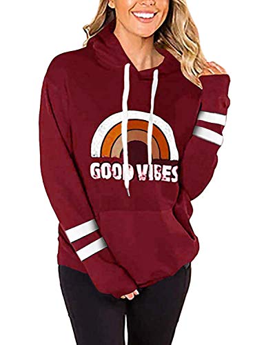 BUOYDM Donna Felpe con Cappuccio a Maniche Lunghe Stampa Arcobaleno Hoodie Sweatshirt Rosso M