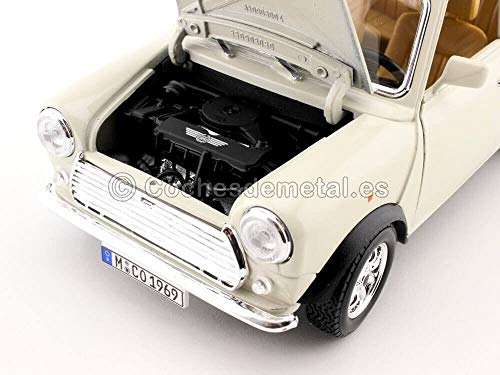 Burago MODELLINO in Scala Compatibile con Mini Cooper 1969 Cream W/Black Roof 1:18 BU12036C