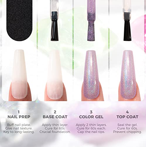 Lunga durata per 21+ giorni - BURANO Holographic Nail Polish Glitter Gel Polish può durare 21+ giorni per l'unghia, nessun sollevamento, nessun danno Smalto, blu viola rosa oro i colori più popolari per te.