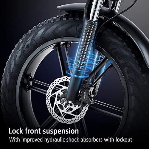 Telaio in lega di alluminio: questa bici elettrica da trasporto urbano adotta telaio in lega di alluminio 6061, manubrio regolabile e altezza del sedile, fornendo un'eccellente esperienza di guida. Il design pieghevole è comodo da trasportare nel bagagliaio dell'auto. La mountain bike elettrica è dotata di pneumatici di alta qualità 20×4.0 pollici, adatti per pendolarismo, strade innevate, strade sabbiose e ambienti fuoristrada.