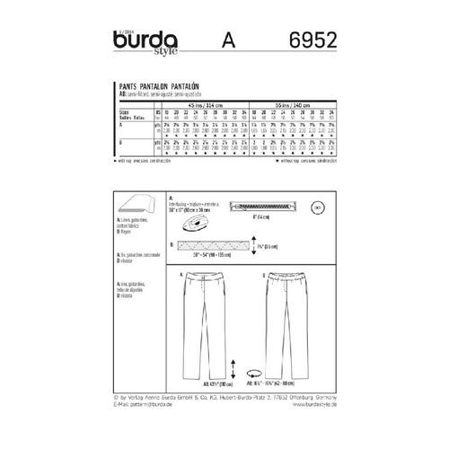 Burda B6952 - Cartamodello per Pantalone, 19 x 13 cm (Lingua Inglese)
