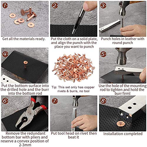 Ampia gamma di applicazioni: questa tuta con rivetti in rame e bava è adatta per la produzione o la riparazione di prodotti in pelle, come cinture,, corde, accessori in pelle, ecc., Offrendo maggiore praticità.