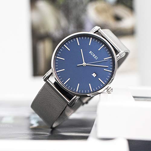 BUREI Uomo Orologio da Polso al Quarzo Classico con Cassa Ultra Sottile Design Minimalista Quadrante Analogico Data Finestra Movimento al Quarzo Giapponese