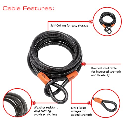 Burg-Wachter 129C Sterling 129C-Cavo in acciaio intrecciato a doppio anello, rivestito in vinile, 12 mm x 9 m, colore: Nero, 12mm x 9M