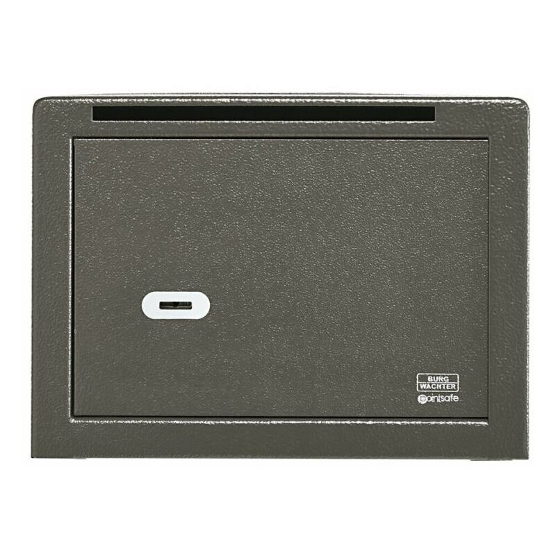 I mobili Burg-Wächter Safe P 2 S Ews hanno un corpo solido ben parete e una porta a doppia parete. C'è un pavimento specialistico rimovibile all'interno. La cassaforte è preparata per il fissaggio del muro e del suolo. Il materiale di montaggio è incluso nella consegna. Offre due slot pratici di lancio. Uno in cima alla cassaforte (325 mm x 10 mm) per carte più grandi fino al formato DIN-A4. L'altro sul davanti (240 mm x 10 mm). Un blocco a doppia barra chiude la cassaforte. Con un palazzo a doppia barra a due slot -in: top (325 mm x 10 mm) e sul davanti (240 mm x 10 mm) con due tasti