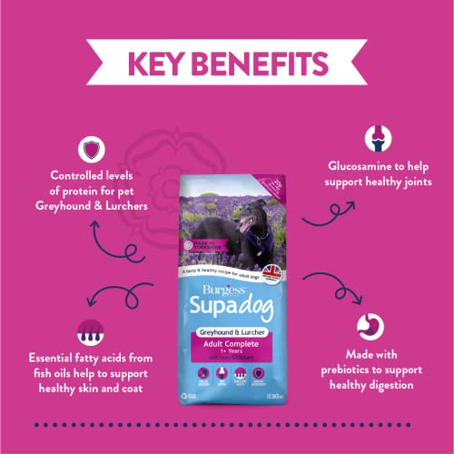 Burgess Supadog Greyhound and Lurcher Cibo per cani con sapore di pollo, 12.5 kg