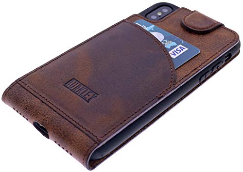 Burkley Custodia in Pelle per Apple iPhone XS Max Cover in Pelle per Telefono iPhone XS Max - Cover Interna infrangibile - Slot per schede - Castano Antico