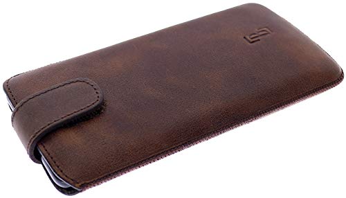 Burkley Custodia in Pelle per Samsung Galaxy S6 Custodia Protettiva per Telefono Cellulare - Cover con Linguetta e Easy-out Sistema - Look Vintage - Castano Antico