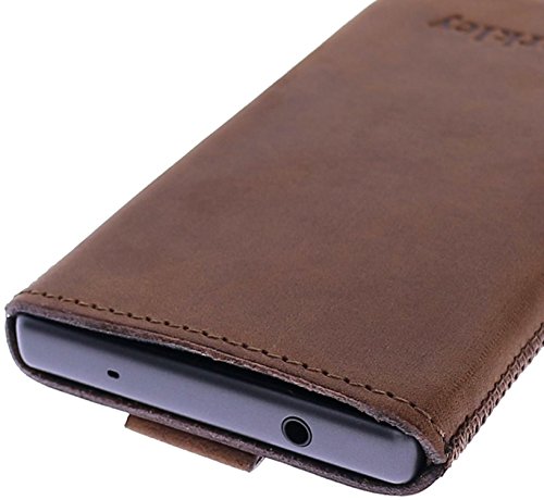 Burkley Custodia in Pelle per Sony Xperia Z5 Compact, in Pelle Marrone caffè