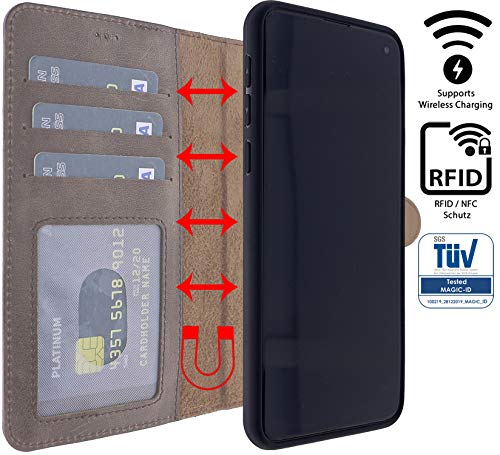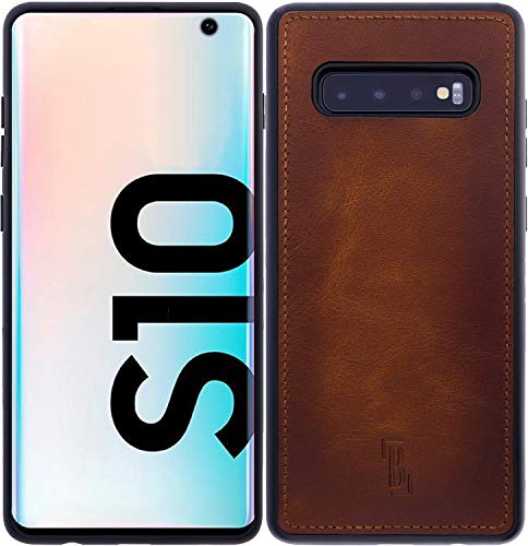 Burkley Custodia Samsung S10 con Portacarte e Supporto. Cover in pelle vintage Galaxy S10 uomo e donna - Portafoglio protettivo RFID/NFC con custodia posteriore staccabile - marrone sellino