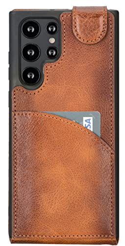 Burkley Custodia Samsung S22 Ultra con Portacarte - Cover Flip in pelle vintage Galaxy S22 Ultra per uomo e donna - Custodia protettiva per telefono con protezione RFID/NFC - marrone sellino