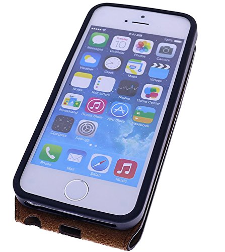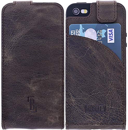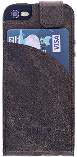 Burkley FLIP-G6-IP5 Premium - Custodia in Pelle con Aletta e Scomparto per Bancomat e Carte di Credito per Apple iPhone 5, Colore: Grigio/Marrone Slavato