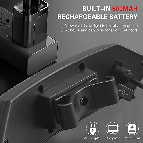 Batteria integrata da 500 mAh, che carica completamente la luce posteriore della bicicletta in 1,5-2 ore e può funzionare per circa 8-9 ore.