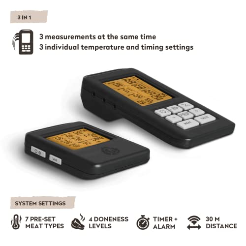 BURNHARD Termometro da Barbecue Digitale Senza Fili, 3 Sensori, Fino a 300 °C, Display LCD, Termometro da Cucina, Adatto per Il Forno