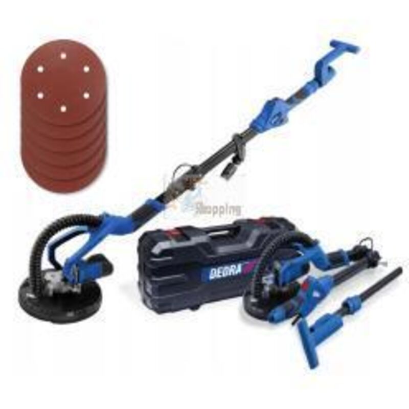 Dati tecnici: Alimentazione elettrica: 230 V, potenza: 750 W, regolazione continua della velocità: 1000 - 2100 giri/min, lunghezza: 135 - 180 cm, diametro della piastra di levigatura: 225 mm, peso: 4,5 kg, gesso nuovo di altissima qualità levigatrice con manico telescopico potenza 750 W della nota e rinomata azienda DEDRA. È uno dei dispositivi più potenti sul nostro mercato. Lavora vicino al bordo grazie al segmento della spazzola rimovibile. I fori nel disco aumentano l'efficienza dell'estrazione della polvere. La regolazione dell'estensione consente all'operatore della macchina di levigare le parti inferiore, media e superiore della parete e del soffitto senza modificare la posizione. Il design comodo ed ergonomico consente una levigatura delle superfici facile e veloce. Regolando la velocità del motore è possibile adattare la velocità di rotazione del disco al materiale da macinare. Estremamente leggero. Tubo lungo 4,5 m per il collegamento ad un aspiratore industriale. Adatto per