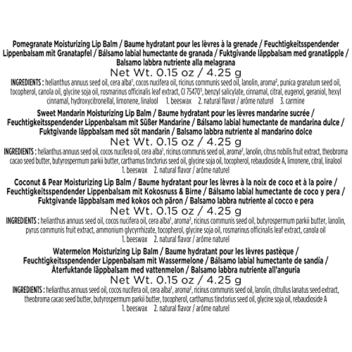 Burt's Bees Set Balsamo Labbra, Melograno, Cocco & Pera, Cocomero, Mandarino Dolce, Just Picked, 4 x 4.25 g
