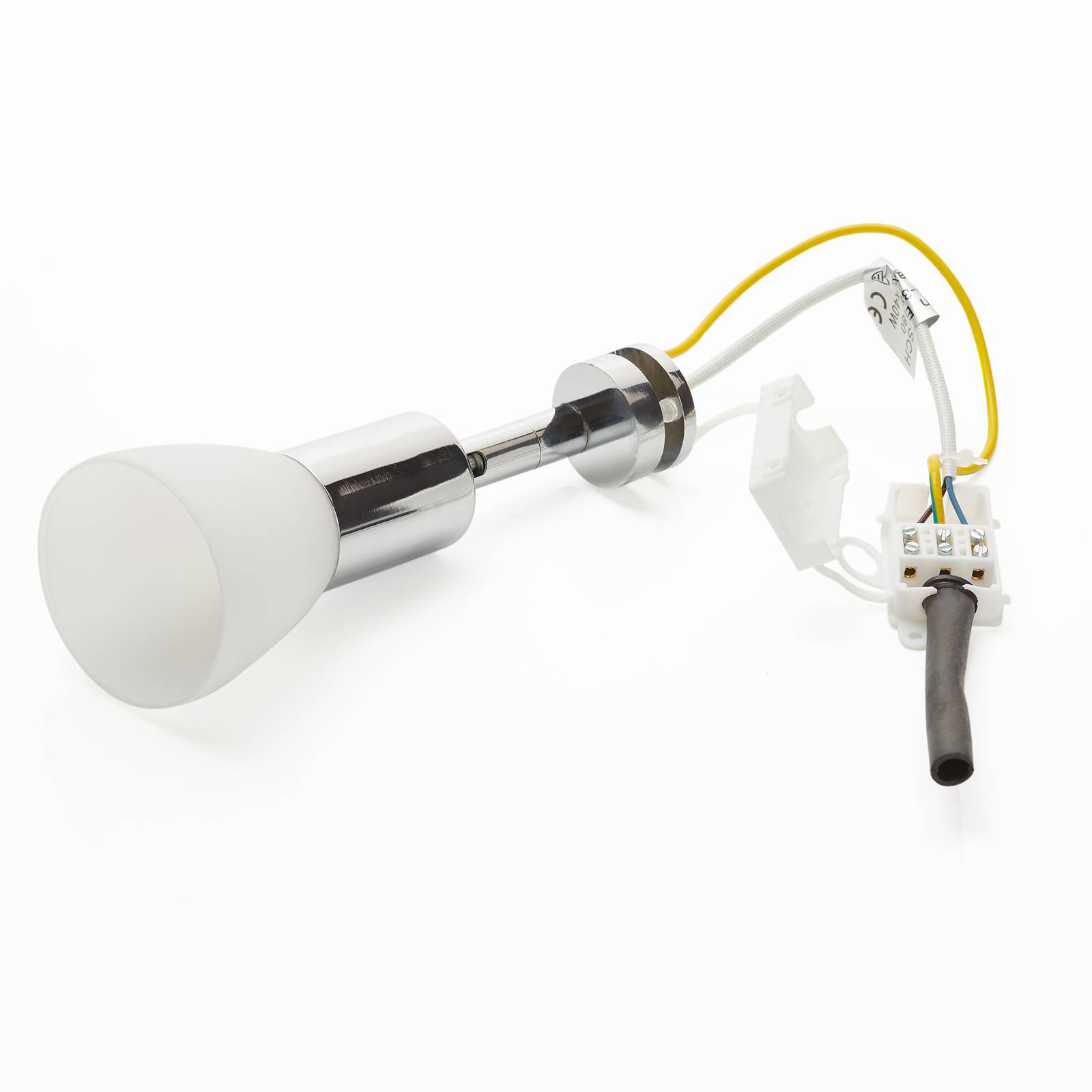 Apparecchio mobile per specchio JENNY con faretto orientabileL'elegante apparecchio per specchio JENNY si monta semplicemente sullo specchio (gamma di fissaggio fino a 5 mm) e inonda il bagno di una luce calda e non abbagliante. La sua base in metallo cromato può essere orientata e quindi regolata a piacere. Il faretto è circondato da un paralume in vetro satinato, che fornisce un'illuminazione particolarmente morbida. Le lampade di questo produttore sono elaborate a mano. Questo garantisce prodotti di alta qualità e durata che soddisfano i più alti standard di qualità e sicurezza.