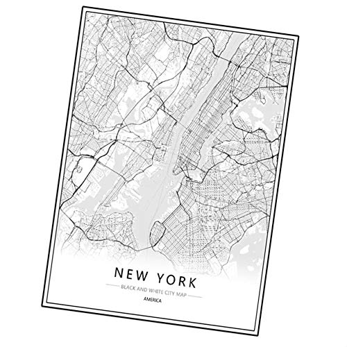 Busirde Londra New York Parigi Parete della Tela di Canapa Pittura World City Map Poster Estratto Bianco Nero a Olio Unframed Olio Disegno Nero Bianco