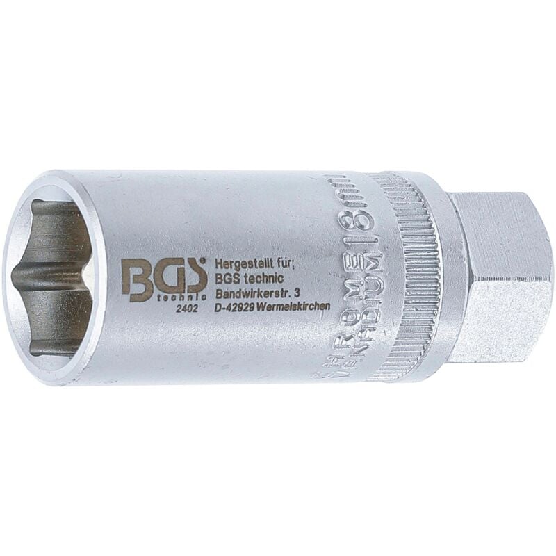 Bussola per candele esagonale | 12,5 mm (1/2) | 18 mm Profilo di uscita Esagono Profilo di azionamento Azionamento quadrato Imballaggio adatto per essere appeso alla parete Ja Peso del tessuto 0.156 Dimensione del profilo di azionamento, imperiale 1/2 Dimensioni dell'imballaggio 1 Materiale (F) Chrom-Vanadium-Stahl Larghezza tra le piastre 18 mm Finitura della superficie Verchromt Dimensione profilo di azionamento, metrico 12,5 mm Lunghezza (cavo) 65 mm Diametro esterno 26 mm Peso lordo 156 g