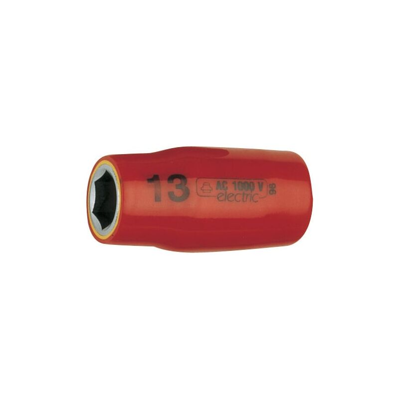 Rivestimento in plastica a isolamento fino a 1000 Volt a norma DIN EN 60900 / VDE 0682-201. Norma: DIN EN 60900 / VDE 0682-201 Nota: Per lavori in presenza di tensione fino a 1000 Volt. Per lavorare in sicurezza si devono combinare esclusivamente utensili interamente isolati (n. art.637650−637656). Dati tecnici Quadro di manovra femmina Zoll 3/8 Superficie es. cromata, con isolamento in plastica Materiale Acciaio al cromo-vanadio Norma DIN EN IEC 60900 / VDE 0682-201 Con profilo AS-drive no Tipo di prodotto Bussola Apertura, mm 10 Lunghezza, mm 45 ⌀ Lato uscita, mm 18