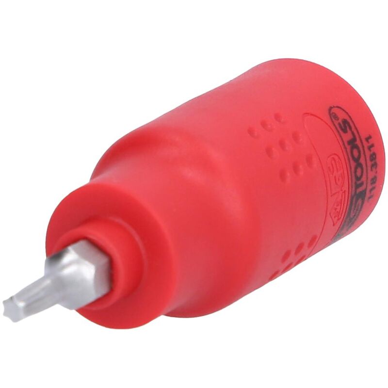 Torx Con rivestimento isolante a norma IEC 60900 Attacco quadro femmina a norma DIN 3120 / ISO 1174 con sede per sfera di tenuta Brunito Cromo-vanadio Azionamento quadro in pollici 3/8 Lunghezza totale L in mm 60 Dimensione profilo in TORX T15 Profilo 1 Torx Peso del tessuto 40 Dimensioni dell'imballaggio 1 Materiale1 Feinster Chrom Vanadium Stahl