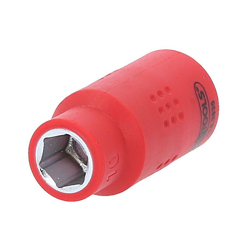 Esagonale Profilo FlankTraction Secondo norme DIN 7448 Rivestimento isolante a norma IEC 60900 Attacco quadro femmina a norma DIN 3120 / ISO 1174 con sede per sfera di tenuta Cromo-vanadio Diametro D1 23.0 Peso del tessuto 35 Diametro D2 19.5 Dimensioni dell'imballaggio 1 Materiale1 Feinster Chrom Vanadium Stahl Larghezza tra le piastre in mm 10 Azionamento quadro in pollici 3/8 Lunghezza totale L in mm 48.0 Standard DIN 7448, DIN 3120, ISO 1174, IEC 60900 Attributo di funzione 1 VDE Profilo 2 metrisch Profilo 1 6-Kant Certificato di prova 1000V Isolamento Isolierung nach DIN EN 60900