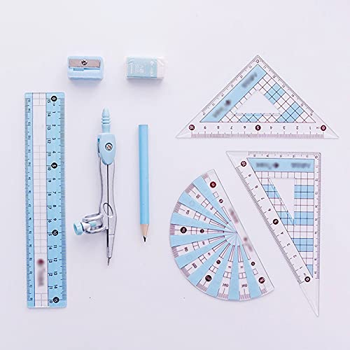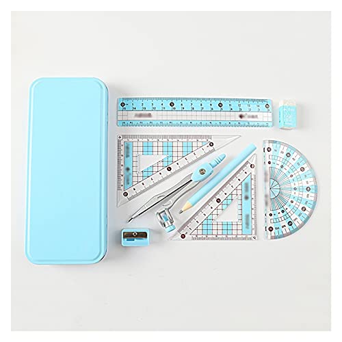 Bussola Matematica Kit geometry Kit 8 pezzi Kit utensili per la matematica con bussola a matita a matita per matita Triangolo 6in stoccaggio righello per Matematica,Disegno (Color: Blue)