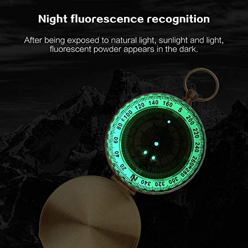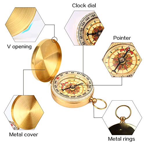 3. 【Design portatile】 La bussola da esterno è realizzata in resistente materiale in lega con una superficie diversa su ciascun lato. Copertura in metallo pieghevole. Portatile e facile da trasportare in tasca. Design retrò-nostalgico, guscio in metallo placcato oro, superficie lucidata a specchio.