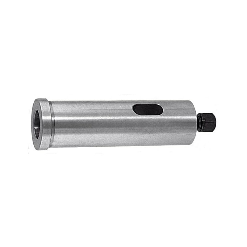 Bussole a cono Morse con vite di estrazione per portautensili a cambio rapido n. art. 318300. La bussola è cilindrica sul lato esterno. Uso: Per utensili con cono Morse (per es. punte elicoidali, svasatori, alesatori, ecc.). Dati tecnici Tipo di prodotto Portautensile Per n. art. 318300 A Codolo cono Morse CM 2 ⌀ Esterno, mm 30