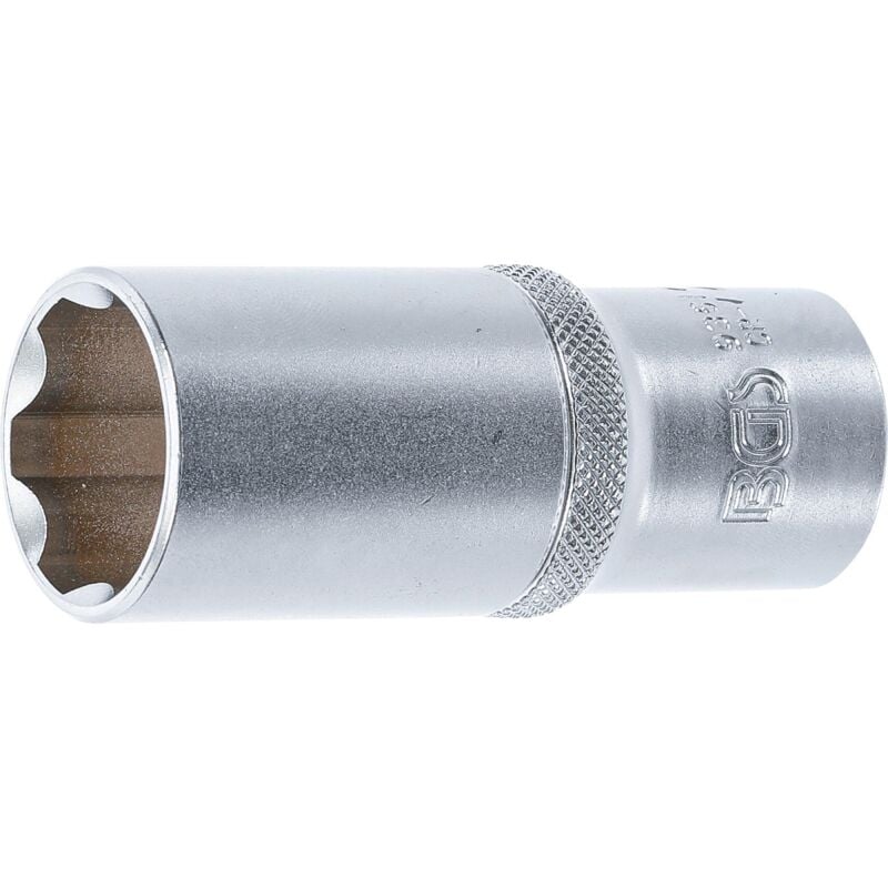 Con zigrinatura Larghezza tra le piastre 24 mm Profilo di uscita Super Lock (Wellenprofil) Profilo di azionamento Azionamento quadrato Finitura della superficie Verchromt, matt Imballaggio adatto per essere appeso alla parete Ja Dimensione profilo di azionamento, metrico 12,5 mm Peso del tessuto 0.214 Dimensione del profilo di azionamento, imperiale 1/2 Dimensioni dell'imballaggio 1 Peso lordo 214 g Materiale (F) Chrom-Vanadium-Stahl