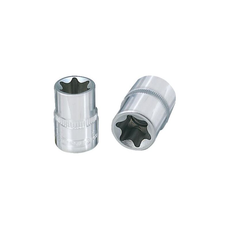 Torx profilo E Attacco quadro femmina a norma DIN 3120 / ISO 1174 con sede per sfera di tenuta Per utilizzo manuale Cromate lucide Cromo-vanadio Dimensione della chiave in E-TORX E7 Azionamento quadro in pollici 1/4 Lunghezza totale L in mm 25 Standard DIN 3120, ISO 1174 Profondità T in mm 6 Profilo 1 E-TORX® Diametro D1 10 Peso del tessuto 10 Diametro D2 11 Dimensioni dell'imballaggio 1 Materiale1 Feinster Chrom Vanadium Stahl, hochglanz verchromt Forma gerändelt