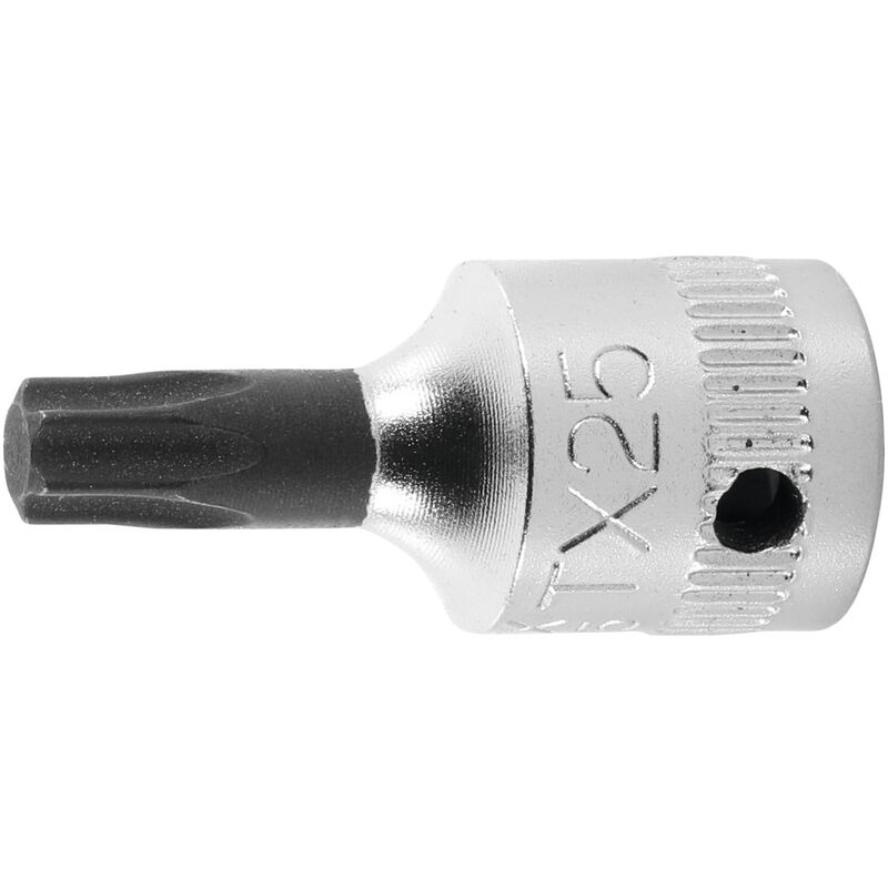 DescrizioneEsecuzione:Forgiate in acciaio di grande qualità, svasate internamente per una rapida presa sulle teste delle viti. Quadro femmina con foro a norma DIN 3120-D 6,3.Materiale:Acciaio al cromo-vanadio, esecuzione cromata.Dati tecnici Impronta Torx® TX25/89 Quadro di manovra maschio 1/4 in Dimensione profilo A 4,4 mm ⌀ lato azionamento 11 mm Lunghezza 25 mm Profilo di manovra Giraviti per viti con impronta Torx® Tipo di prodotto Bussola Codice articolo 631805 TX25 EAN / GTIN 4045197559883