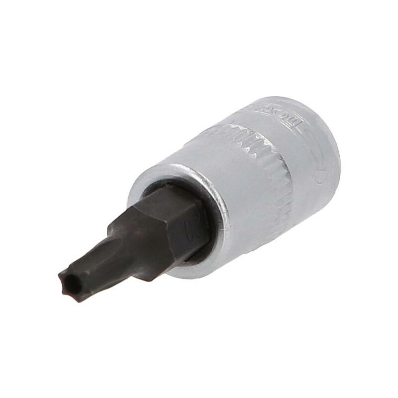 Torx con foro Attacco quadro femmina a norma DIN 3120 / ISO 1174 con sede per sfera di tenuta Con inserto nichelato inserito a pressione Per utilizzo manuale Cromata opaca Cromo-vanadio Azionamento quadro in pollici 1/4 Lunghezza totale L in mm 37.0 Standard DIN 3120, ISO 1174 Dimensione profilo in TORX TB20 Profondità T in mm 20 Profilo 1 Torx mit Stirnlochbohrung Peso del tessuto 14 Diametro D 12.0 Dimensioni dell'imballaggio 1 Materiale1 Feinster Chrom Vanadium Stahl, matt satiniert verchromt Forma gerändelt
