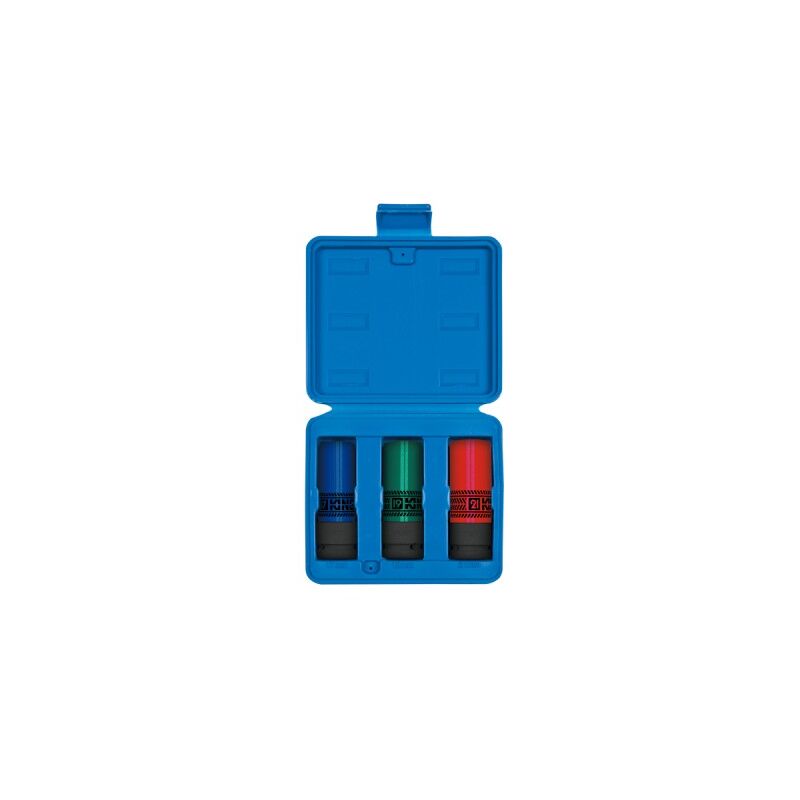Materiale: acciaio legato al cromo molibdeno. Il robusto guscio esterno protegge le ruote lucidate e i dadi di montaggio DR da 1/2". Versione a parete sottile con custodia in plastica. Custodia in plastica: 149 x 132 x 45 mm. Il set include: Bussola a percussione - Misura 494517M - Bussola da 17 mm - Quadrata 1/2" D1 - 27,3 mm D2 - 30 mm L - 26 mm L - 86 mm Bussola a percussione - 494519M Misura - Bussola da 19 mm - Quadrata 1/2" D1 - 29,3 mm D2 - 30 mm L - 26 mm L - 86 mm Martello a percussione con chiave a bussola - misura 494521M - bussola 21 mm - quadra 1/2" D1 - 30,9 mm D2 - 30 mm L - 86 mm L - 26 mm**