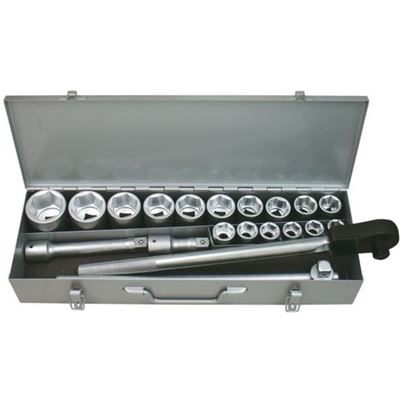 Set composto da 16 bussole esagonali da 19-50 mm. e 4 accessori - In acciaio cromo vanadio - Cf. in valigetta metallo Confezione: 1 SR Attacco 3/4