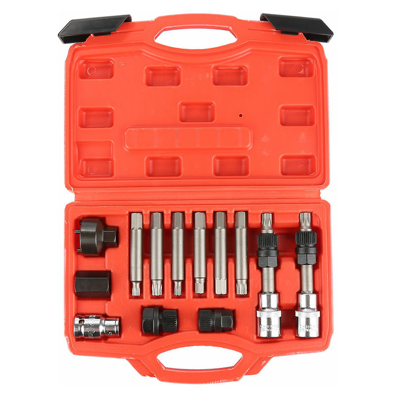 Caratteristiche: Materiale: acciaio al carbonio Dimensioni custodia: 23 * 17 * 5,5 cm 2 pezzi 110 mm 1/2" bit M10 T50 6 pezzi di 75mmS2 lotto testa M8 M10 H8 H10 T40 T50 1 pezzo esagono interno 10mm1/2" 4 pezzi testa dedicata #1 33T x19. 5mm, #2 33T x19. 2mm, #3 Hex x22mm, #4 4p x30.2mm Le scatole blu e rosse vengono consegnate in modo casuale