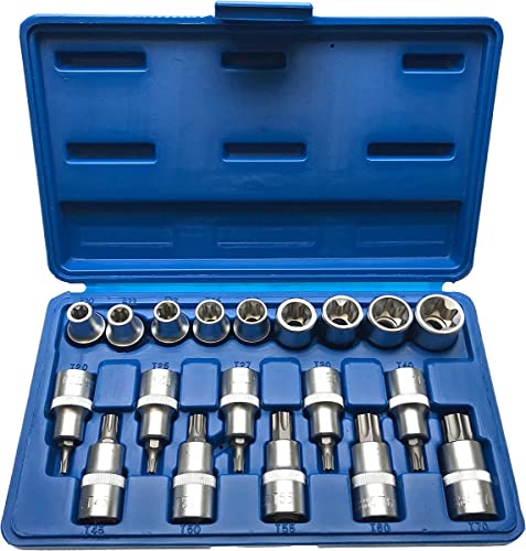 SET 19 BUSSOLE TORX IN ACCIAO CROMO VANADIO ATTACCO 1/2" MASCHIO T20-T70 - FEMMINA E10-24