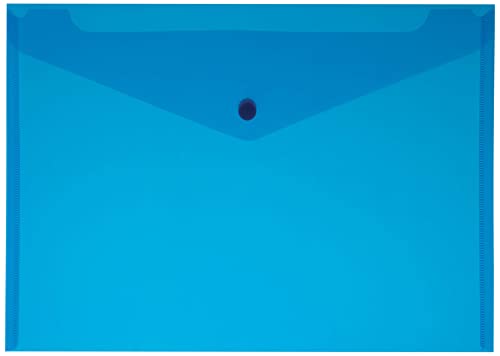 Busta con Bottone Formato cm 14.5x10.5, Portadocumenti in Polipropilene con Chiusura a Pressione, Colore Blu, Confezione da 5 Pezzi