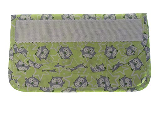 Busta porta bavaglia, porta tovagliolo in cotone 100%, con immagini di tanti simpatici gufetti e stelle bianche sullo sfondo. Fascia ricamabile in tela aida bianca altezza 4,5 cm. Dimensioni: 29 x 15,5 cm. Made in Italy.