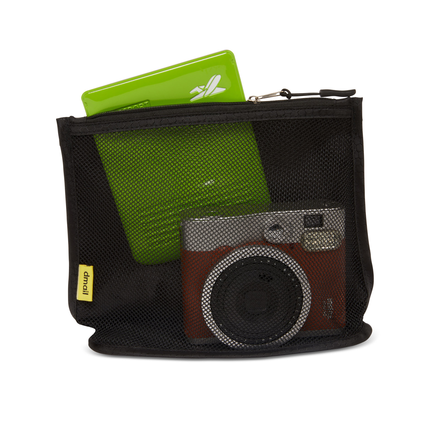 Organizza i tuoi piccoli accessori in questo astuccio da viaggio completo di cerniera e asola per essere appeso. Il design a rete ti agevolerà nell'addocchiare il contenuto anche senza aprirlo. La busta necessaire è realizzata in poliestere ed è comoda per portare con te oggetti personali cme documenti e smartphone, ma anche creme e accessori per l'igiene, fermagli per i capelli e tutto ciò che ti serve in viaggio o durante le tue giornate fuori casa. Dimensioni astuccio: 20x21 cm.