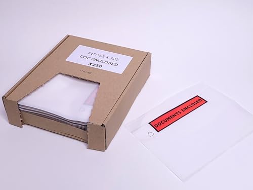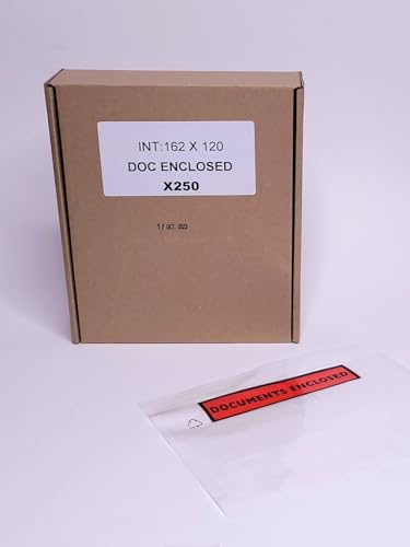 Buste autoadesive per documenti, buste di plastica 250 pz, C6 175x130 mm esterno, 162x120 mm interno. testo "DOCUMENTS ENCLOSED" buste autosigillanti, facili e resistenti.spedizione a pacchetto